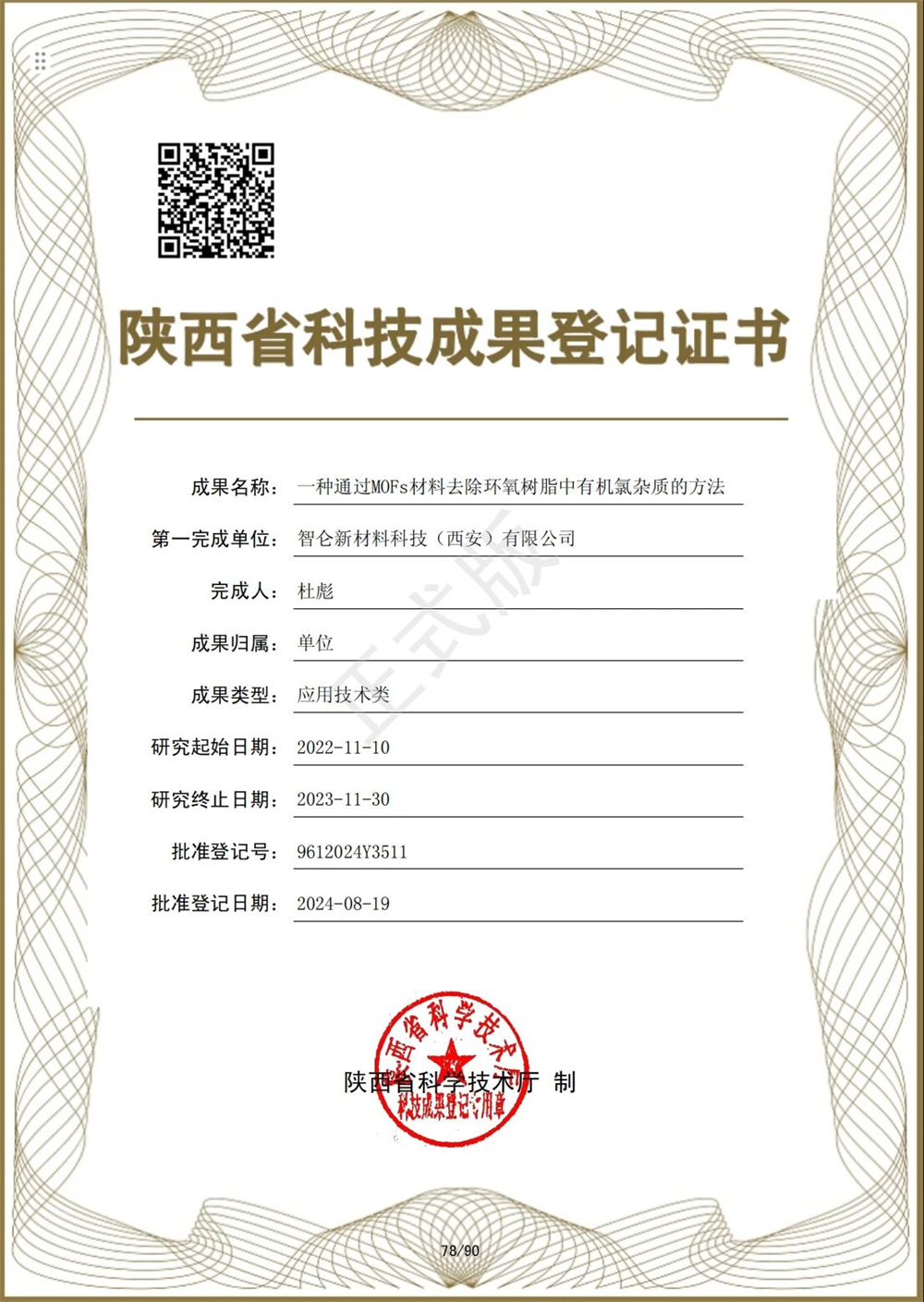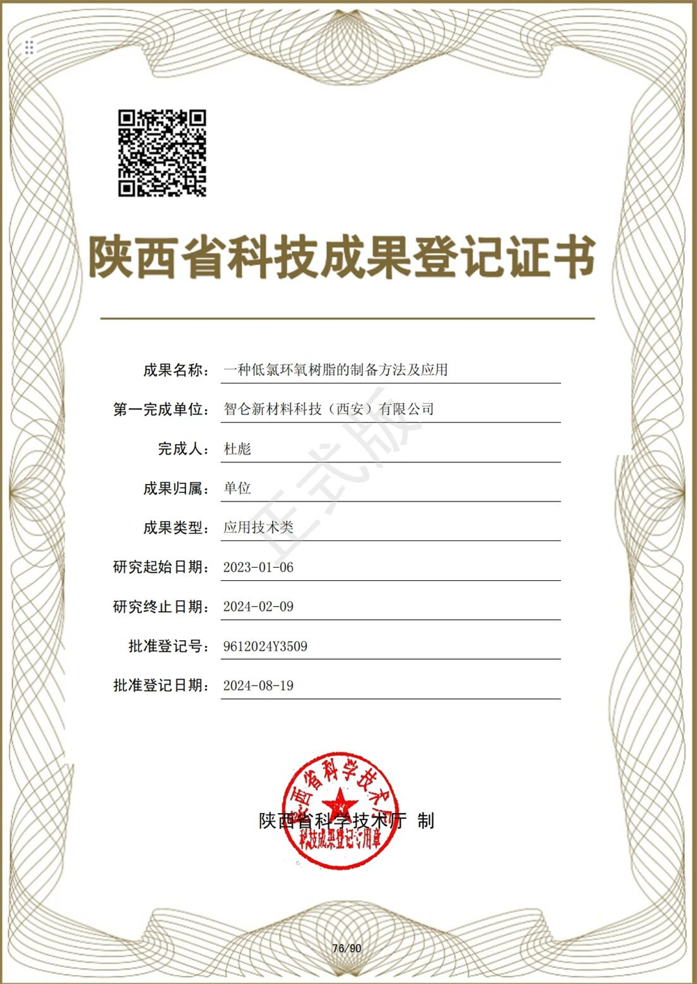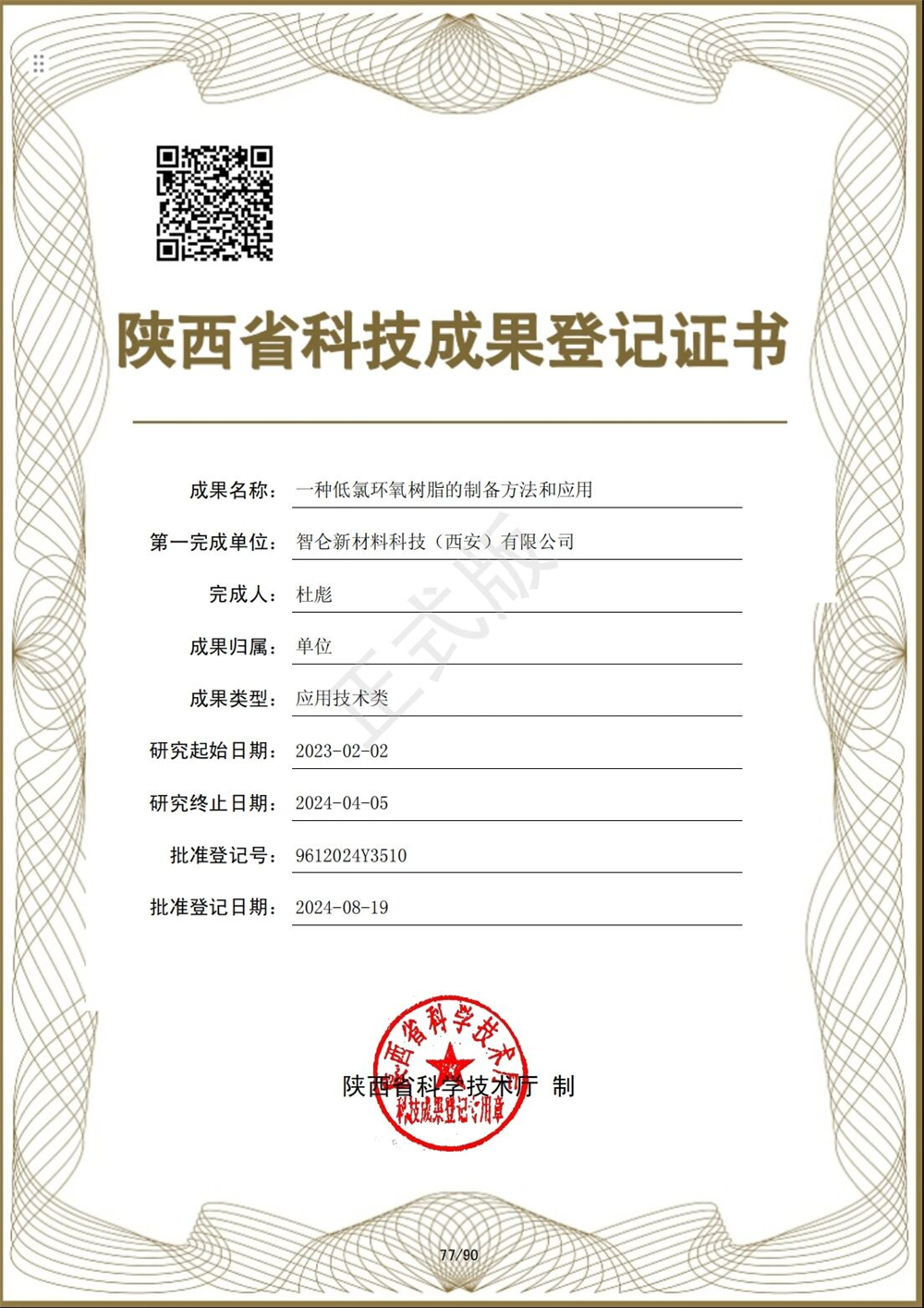 242024年8月30日,智仑新材料科技(西安)有限公司完成的“高纯低氯环氧树脂关键技术研究与应用”科技成果评价会在国家工业信息安全发展研究中心顺利召开。本次会议由国家工业信息安全发展研究中心组织,并邀请了多位国内知名专家进行成果评价。