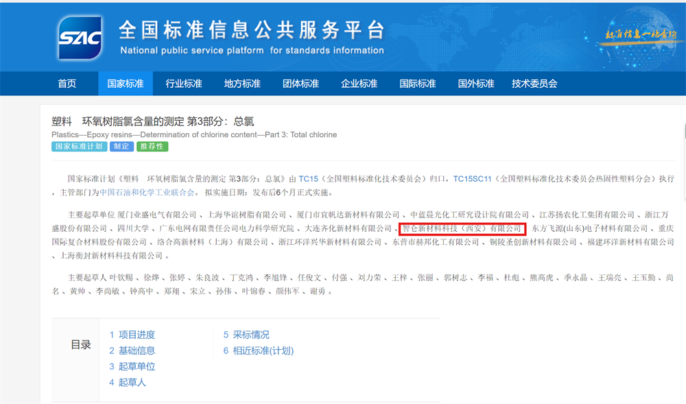 30近日,由智仑新材料科技(西安)有限公司参与起草的国家标准《塑料 环氧树脂氯含量的测定 第3部分:总氯》已经获得批准。该标准由 TC15(全国塑料标准化技术委员会)归口,TC15SC11(全国塑料标准化技术委员会热固性塑料分会)执行。